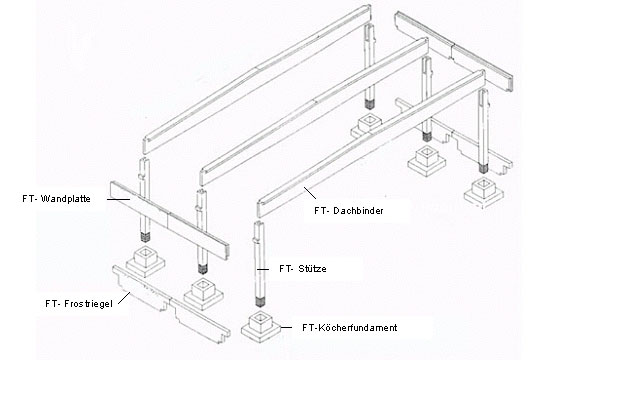 Köcherfundamente, Frostriegel, Stützen und Binder